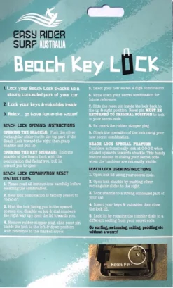 Easy to use resettable combination lock that is hidden by a rubber flap lock your keys unobtrusively and securely under your car keeping them dry and safe, making it easy to get into your car after your trip to the water.