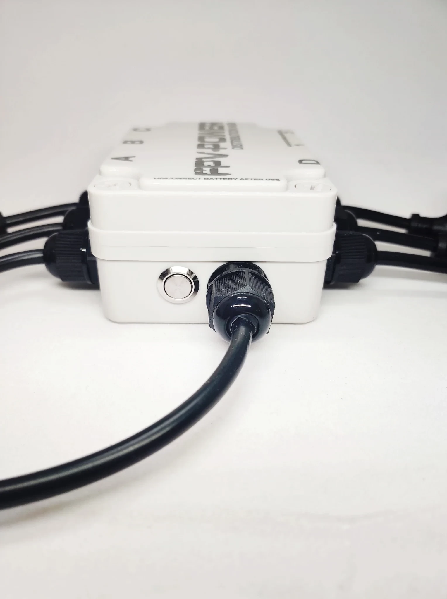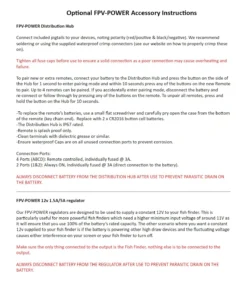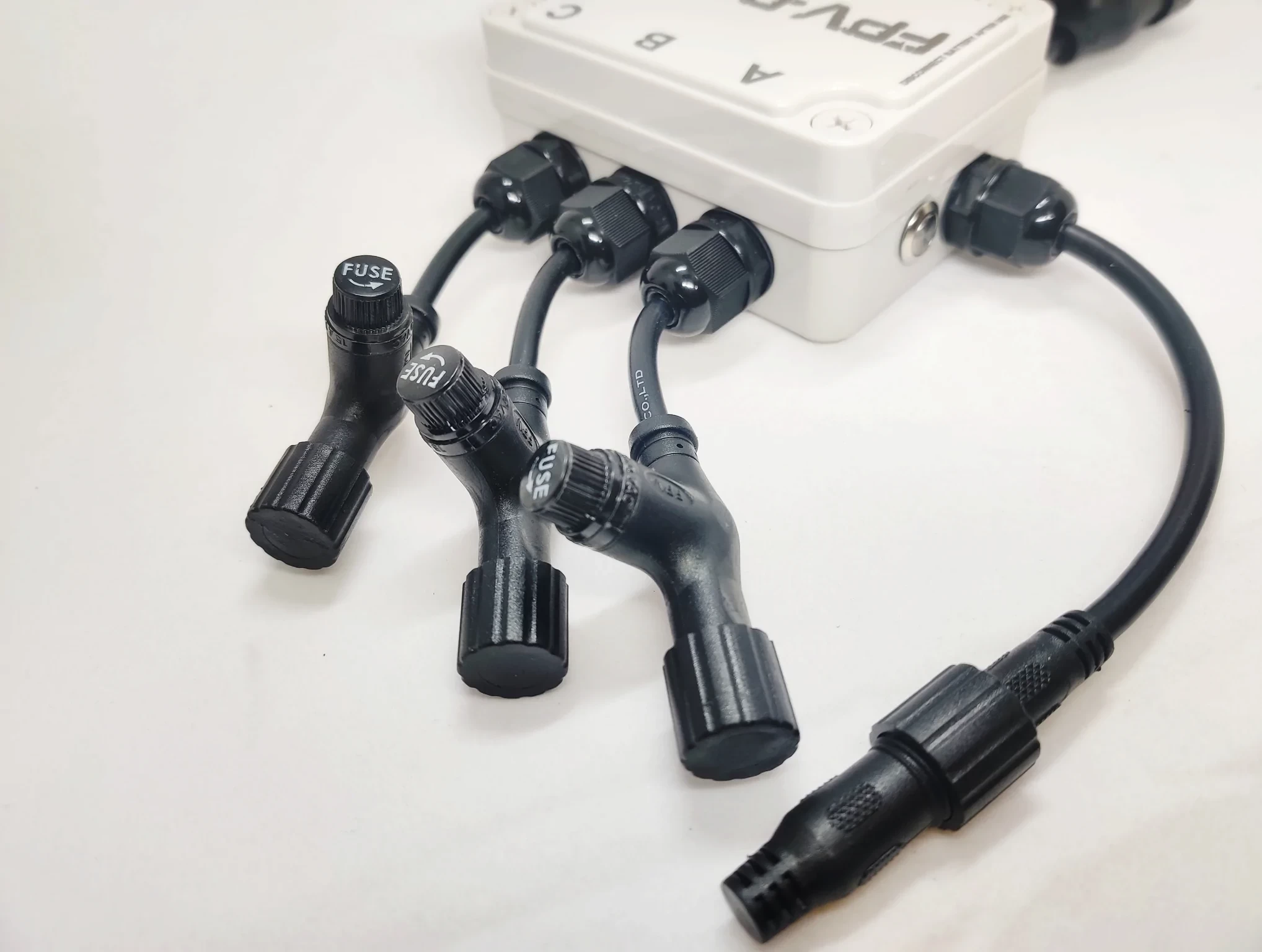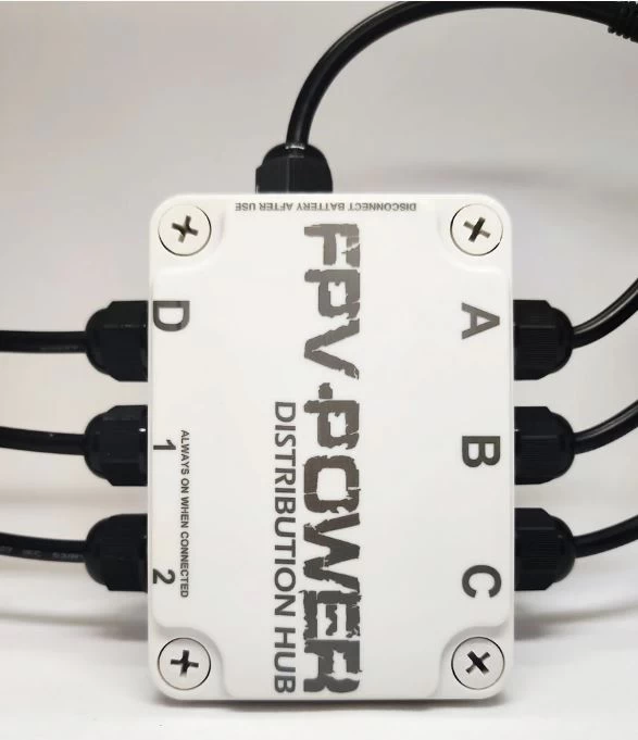 The FPV-POWER Distribution Hub is a plug and play solution for those wanting to power multiple items on their kayak, around the camp or in their campervan/caravan. With 4 ports that can be turned on/off via the supplied remote and 2 ports that are always on, the Distribution Hub is a neat compact solution to powering multiple items such as fish finder, lights, livewell and camera. Each port is individually fused and comes with its own cap, pigtail and waterproof crimps. The input lead also comes capped and matches perfectly with FPV’s 7ah and 17.5ah FPV-POWER packs. The whole unit is IP67 waterproof when the provided leads are capped or in use.