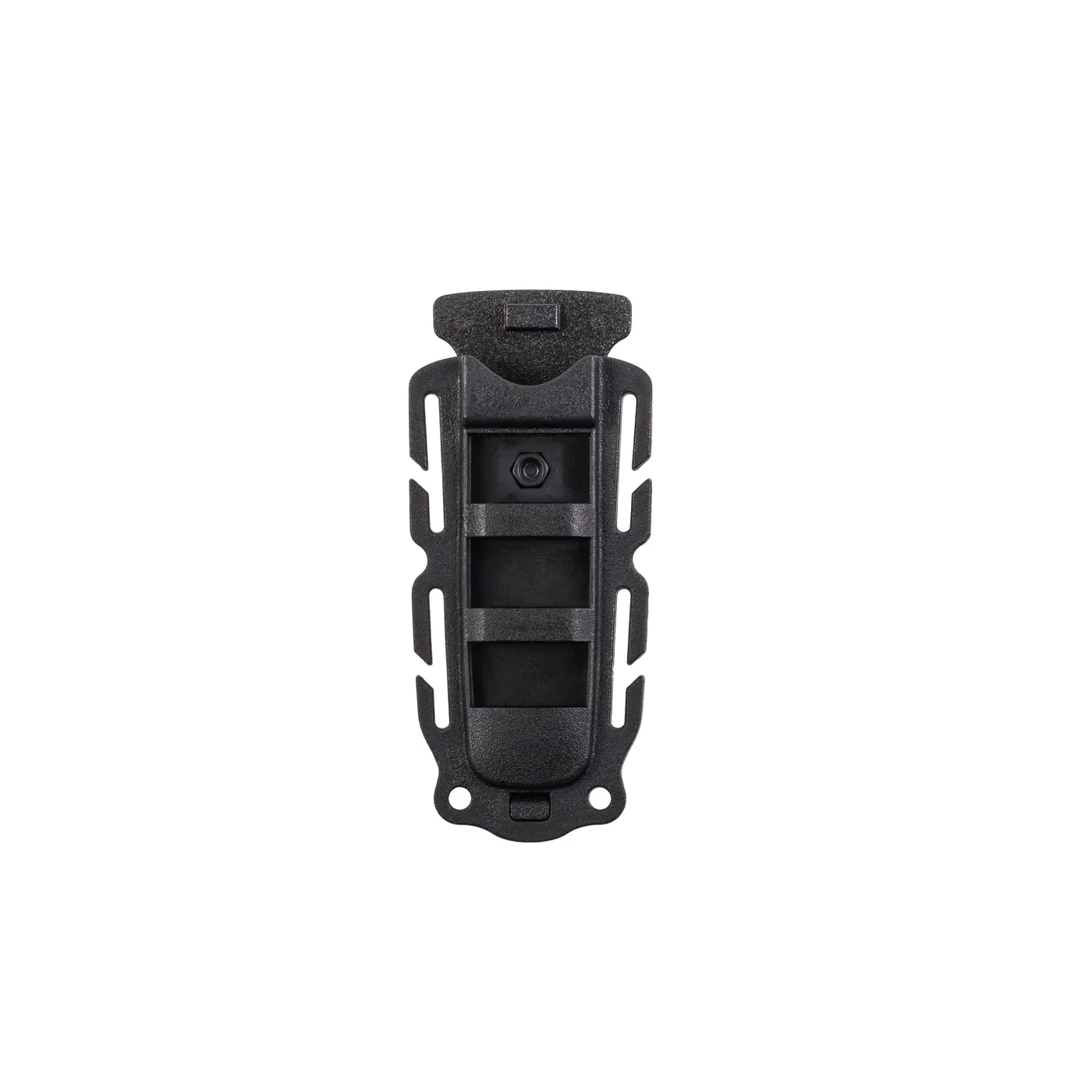Quick drain sheath mounts virtually anywhere with the removable belt clip, 1” webbing mount, and lanyard holes