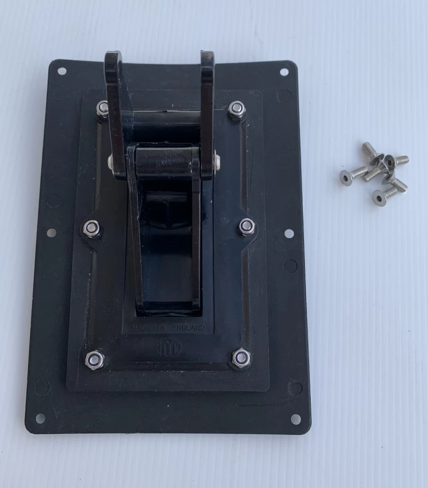 Manufactured from tough salt-water resistant nylon and ABS plastic, each bailer is supplied mounted on a separate curved hull plate using stainless steel fixing nuts, bolts, packing washers. This plate will match the hull of the kayak and seat into the inset mounting position. Once mounted the IYE is flush with the hull of the ski. Comes with 6 x Machine screws to fit to the hull of the ski. This mounting plate is removable for fitting to different shaped skis.