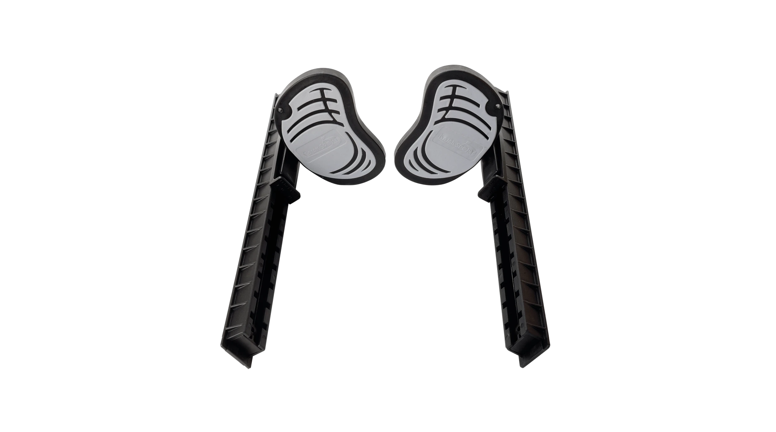 These pedals are larger than the non steering kajak sport footrests and are made of a dual compound with integrated pivot. The steering pedal is connected to the footrest with special flex-joint polymer pivot construction which allows comfort & precise steering quality with any type of rudder. The flex-joint system is totally rust- and carefree in all conditions and there is no possibility of jamming possibility thanks to the innovative construction. The steering pedal have a soft and stylish grip in the centre part to prevent slipping and increase comfort. The rudder cord adjusts automatically when you move the pedals (to easily) allow for different size paddlers.