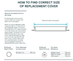 Please note that Kajak Sport Hatches vary in size depending on their construction. Not all hatch covers of the same nominal size will have the same measurements even though they will fit and seal the same rim. To ensure you have the correct hatch for your rim- measure the rim (not the hatch cover). Use the chart in the images to ensure you have the correct size hatch cover.