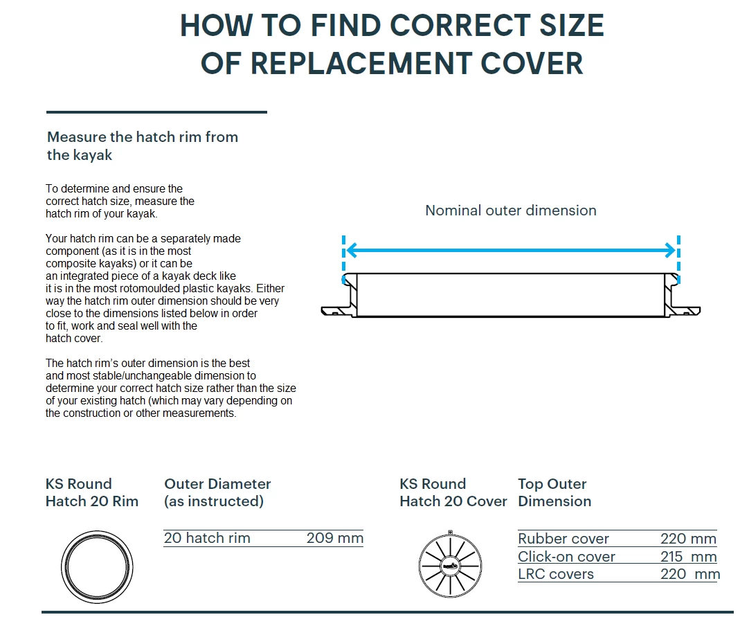To determinate and ensure the correct hatch size, measure the hatch rim of your kayak.