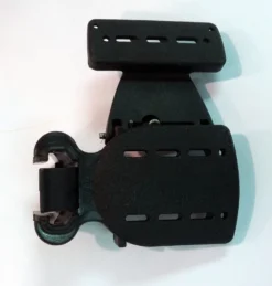 Three wedges or fixing blocks on the back of the rails angle the footrest against the hull to ensure that the pedals are horizontal and snug. These screw in on the 3 wedges.