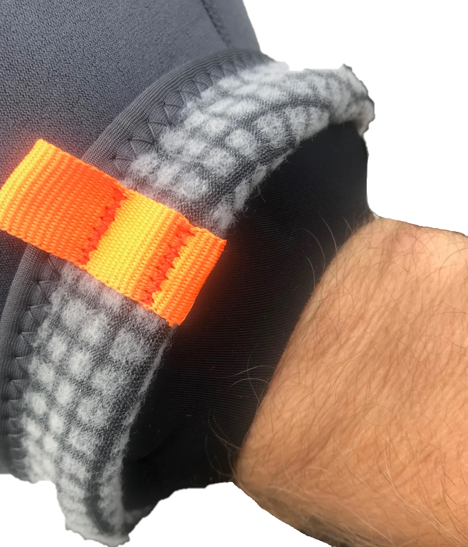 The Palm Descent quick-access pogies are made from 3 mm Quick Dry thermal lined neoprene, with an anti-flush cuff baffle to provide warmth without compromising control. Unlike gloves it is easy to take your hand out to do tasks requiring dexterity that gloves may not be able too.