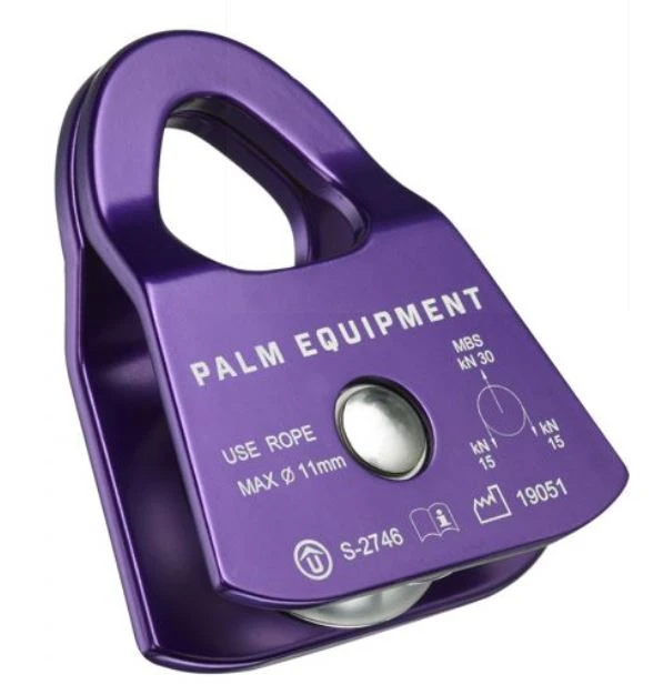 A swing cheek pulley with prusik minding side plates to help with progress capture for hauling systems. Very efficient with a ball bearing, it’s also lightweight and compact enough for your PFD pocket.
