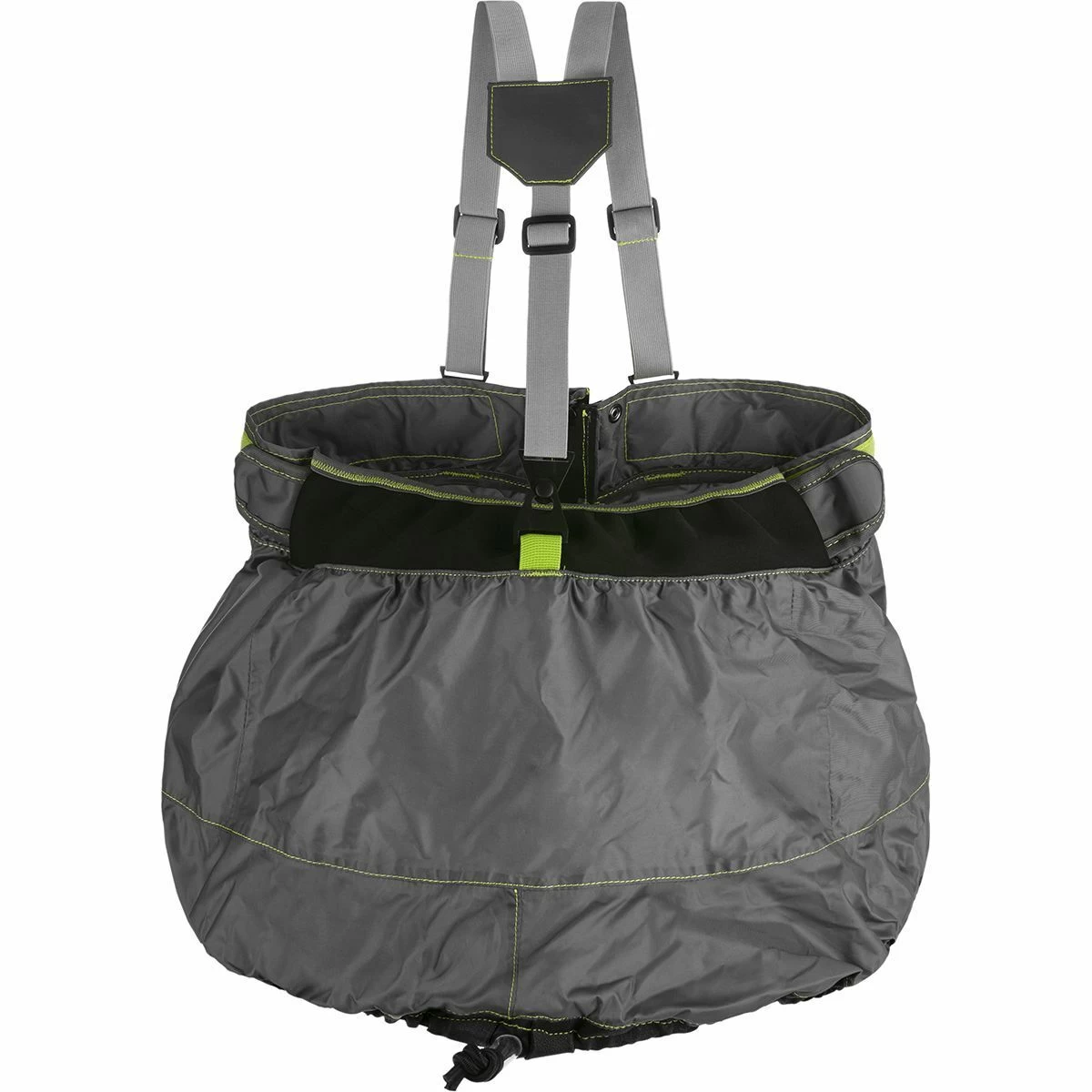 - Adjustable neoprene chest band with removable suspenders- Dry when tight, Cooler when loose.