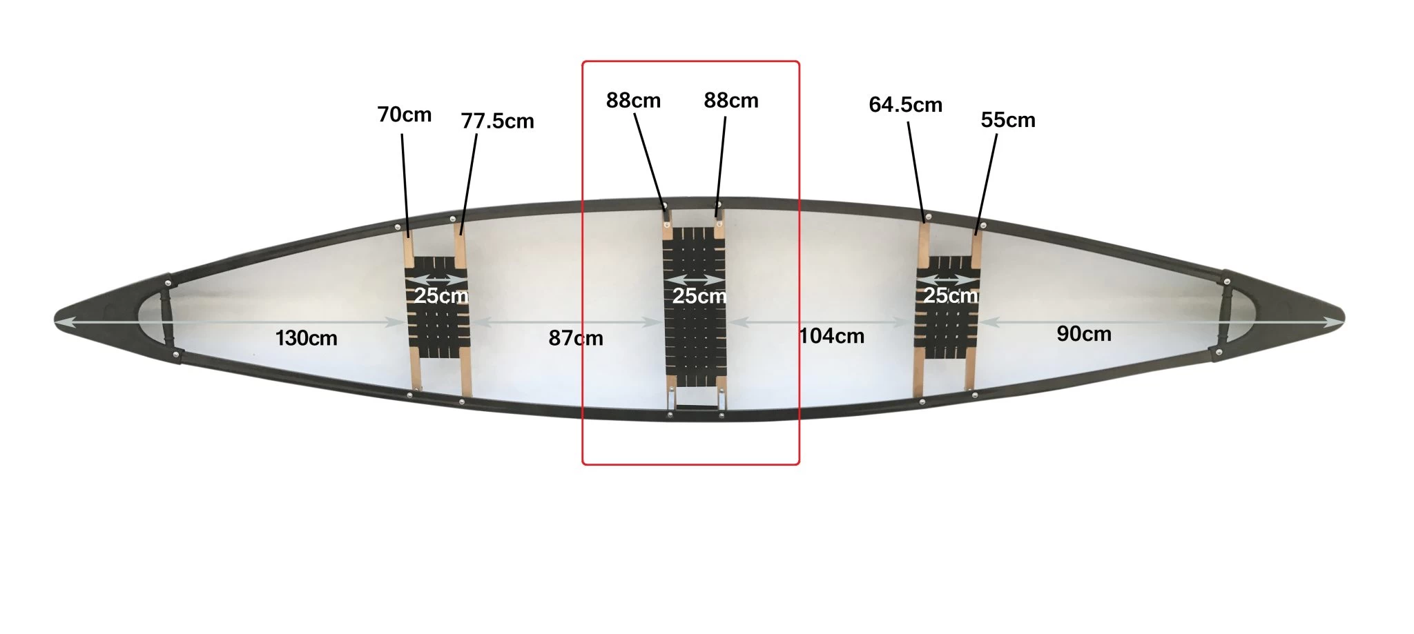 Webbing bottom pad portion of this seat is 66cm wide, it can often fit 2 smaller people on it or enable them to sit closer to the edge. However it is normally to wide to be cut down narrow enough to used as a bow/front or stern/rear seat in most canoes.