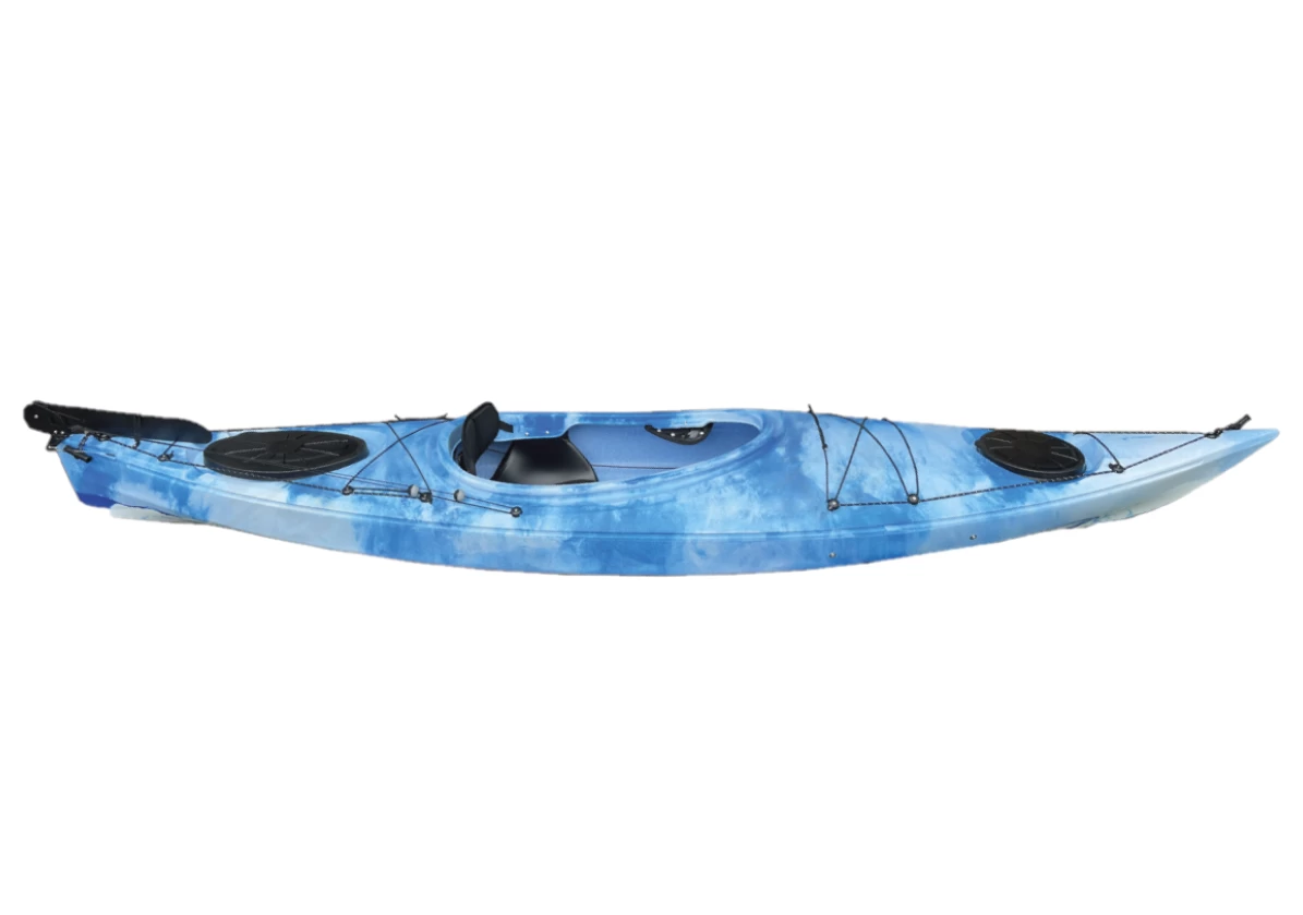 This lightweight friendly kayak is made from tough plastic has a rudder and twin bulkheads but is still light enough to handle on your own. Super comfortable go anywhere do anything.