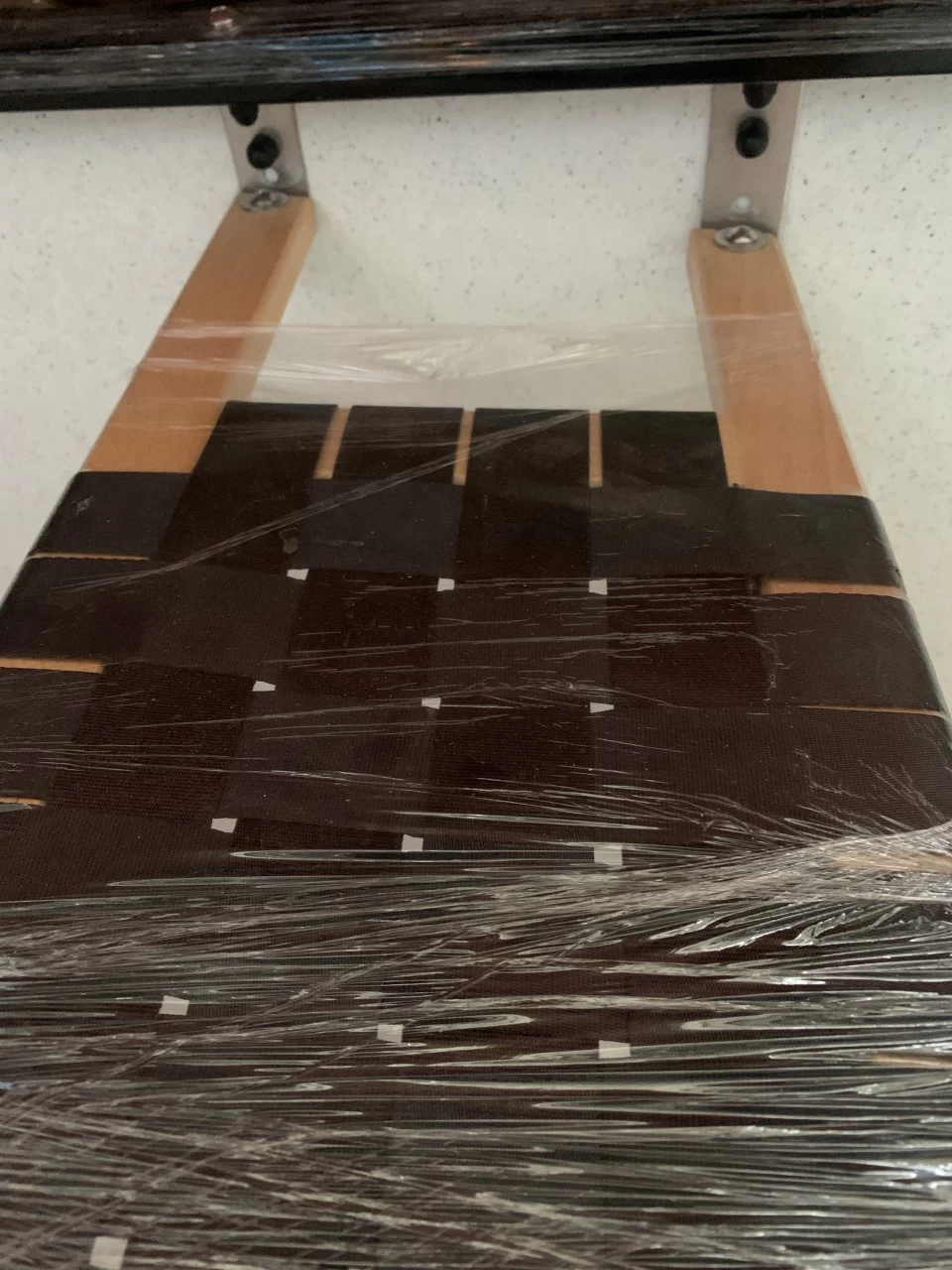 Please note that the cross members are deliberately different lengths to accommodate the curve in the gunwales of the canoe so this cut to fit the stern or rear of a canoe. This is the same size seat “pad” as the Bow seat but with shorter arms.