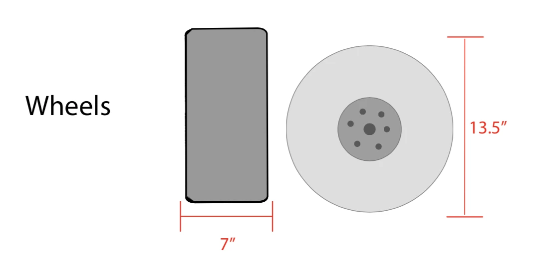 - Large balloon style (sold separately or can be purchased as a complete cart) can be swapped on the same frame