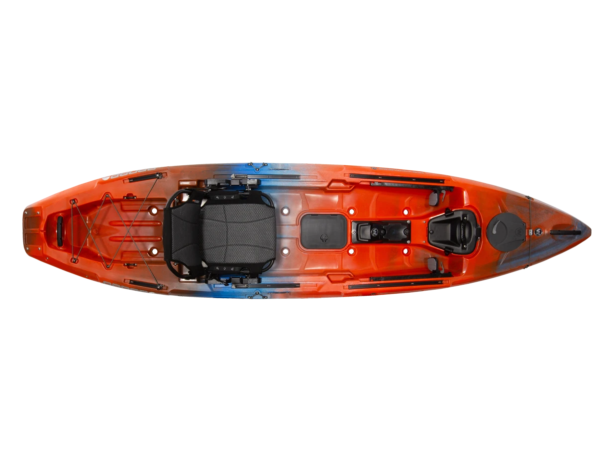 The Wilderness Systems Radar 115 features S.M.A.R.T. Hull Technology that combines Stability, Maneuverability, Acceleration, Responsiveness and Tracking throughout the entire design for ultimate performance in multiple water environments. In addition to a flat platform for standing and freedom of movement, the Radar boasts state-of-the-art outfitting including expansive SlideTrax™ rails, a multitude of storage opportunities, and scupper option to deploy the Helix PD™ Pedal Drive* and even multiple electronics options including down-imaging, side-scanning or both. When utilizing the Helix PD™ (see video below), a built-in steering control system affords easy navigation and hands-free fishing, while the AirPro MAX complements the package with optimized positioning for any mode of travel.