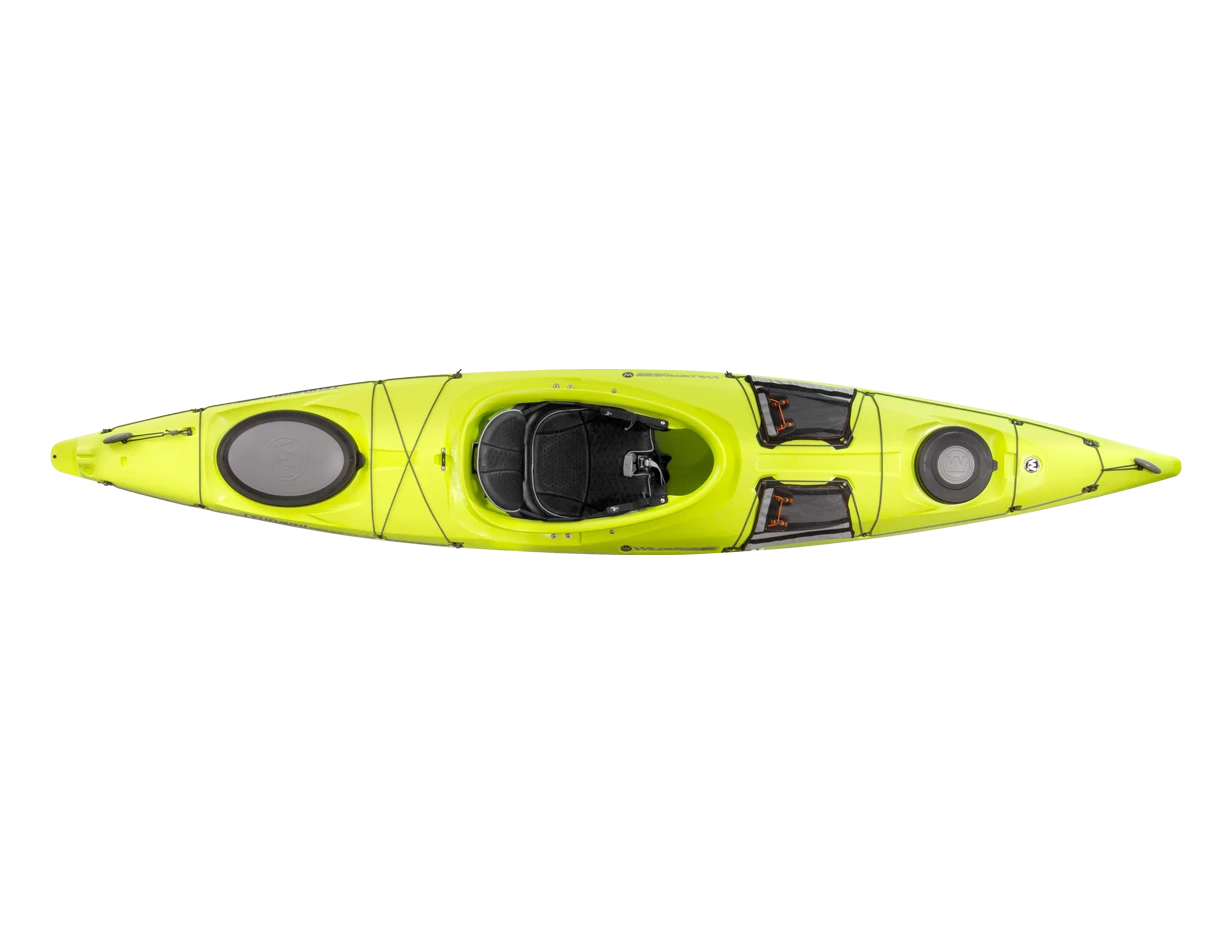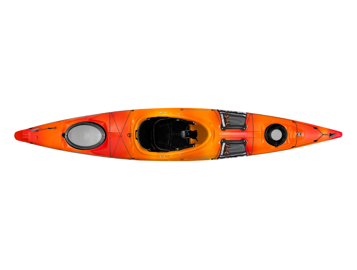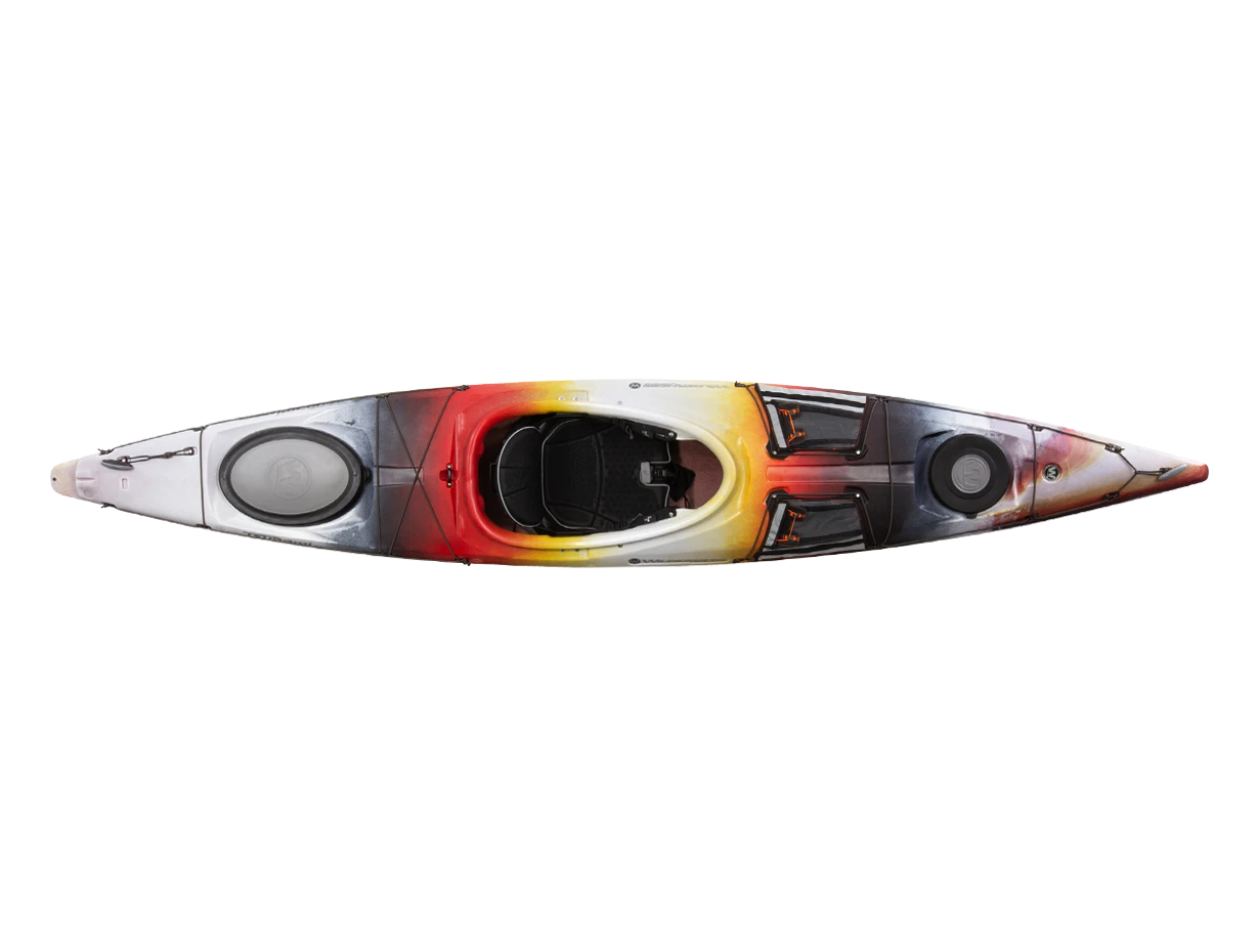 An icon is reimagined in the all-new Tsunami. The aesthetics of the new Tsunami inspire performance and exploration with modern deck lines, while a focus on improving the paddler’s experience sees new features incorporated into the design – two removable mesh deck storage bags are perfect for stowing close-at-hand items, and an under-deck storage area provides another alternative for staging your favorite beverage. Small changes with big effects have also been integrated into the hull – the flared sidewalls and increased volume above the waterline have been improved to provide more confidence and stability, while the longer waterline has increased speed and efficiency. The Tsunami 125 is swift and agile, the spacious cockpit and deeper hull is ideal for day trippers. A touring kayak that excels in tight, twisting environments.